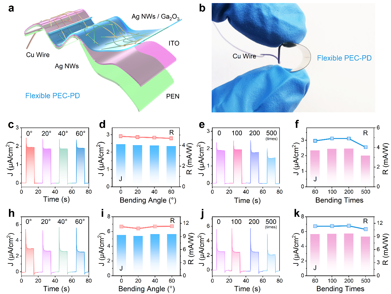 图2:a-Ga2O3@Ag NWs柔性自供电PEC-PDs