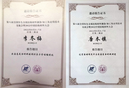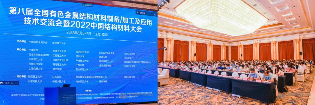 由我院联合主办的“第八届全国有色金属结构材料制备加工及应用技术交流会暨2022中国结构材料大会”于2022年8月5-7日在江苏省南京市召开。余鹏教授为大会联合主席之一,李冬梅副教授为“非晶与高熵合金”分会主席之一。李冬梅副教授做了题目为‘非晶态复合材料的设计及性能优化’的特邀报告,唐本镇博士做了题目为‘近室温磁熵变平台非晶复合材料研究’的特邀报告。