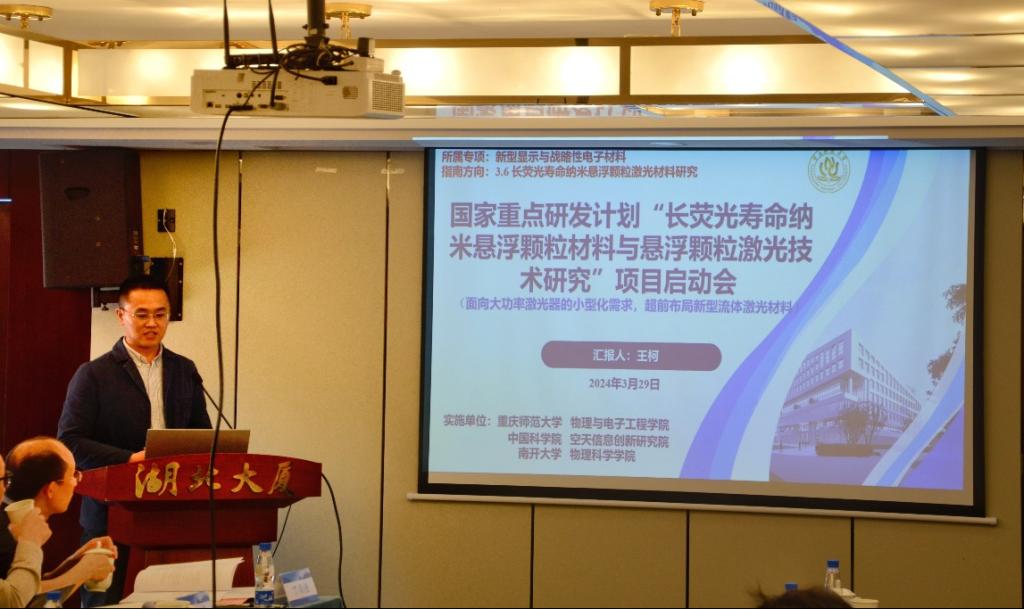2024年3月29日,重庆师范大学作为项目牵头单位承担的国家重点研发计划“新型显示与战略性电子材料”重点专项青年科学家项目“长荧光寿命纳米悬浮颗粒材料及悬浮颗粒激光技术研究”,与天津大学牵头承担的“超带宽、多模式、快速调谐飞秒光学参量振荡器”项目联合启动会暨实施方案论证会在北京顺利召开。