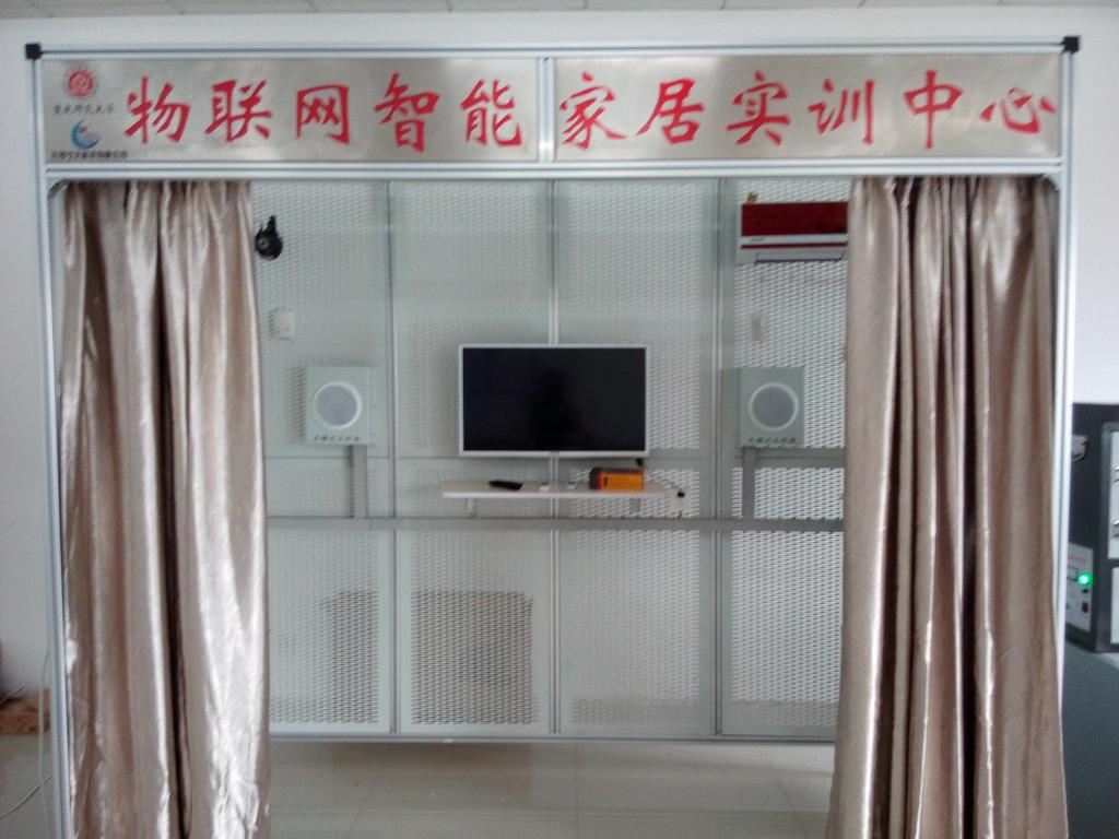 物联网智能家居实训室,使用面积80㎡。物联网智能家居实训系统,主要锻炼的是学生的动手能力和实际操作的技能。学生可以根据自己的设计想法改变模拟房间内环境,也可以通过一体式计算机通过因特网访问房间内自动化服务器,对智能设备、视频监控等远程控制、访问。该装置能进行智能家居系统设计、线路的设计与连接、调试、故障排除、系统配置等实验和实训。